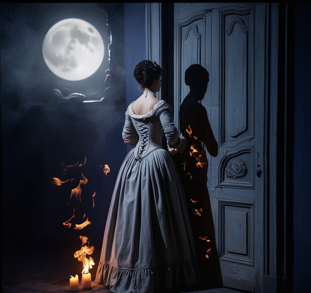 Ho preparato la cenere, setacciata fina, memoria arsa di legno antico e sacro. L’ombra mia si allunga sul muro, nera e silente, compagna fedele che mi segue ovunque io vada. Ma stanotte, sotto questa luce argentea, essa non è più solo un riflesso: l’ombra si desta, respira, si fa viva.