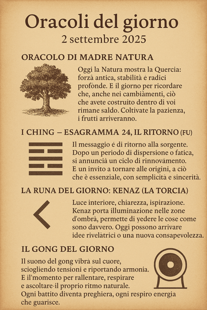 Oracoli del giorno 2 settembre 2025