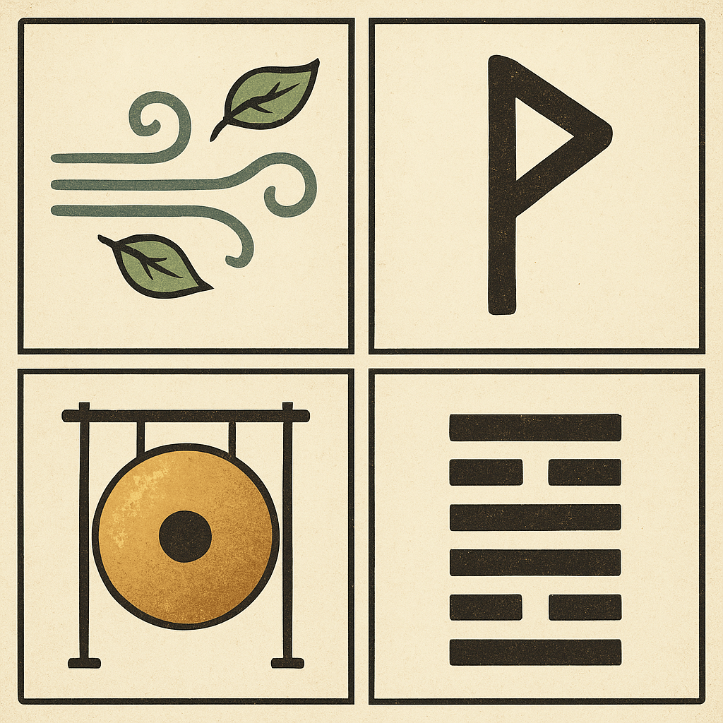 ✨ Sintesi del giorno: il vento porta leggerezza, la runa Wunjo accende la gioia, il gong risveglia nuove energie e l’I Ching annuncia pace ed equilibrio. Una giornata per sorridere al mondo e sentirsi parte di un’armonia più grande.