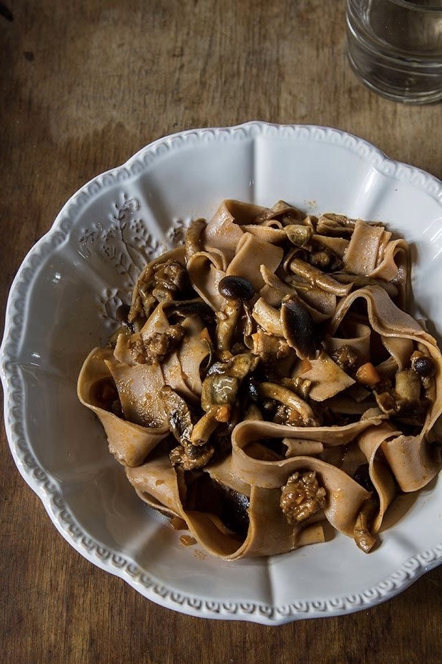🍝 Pappardelle di farina di castagne con funghi e salsiccia