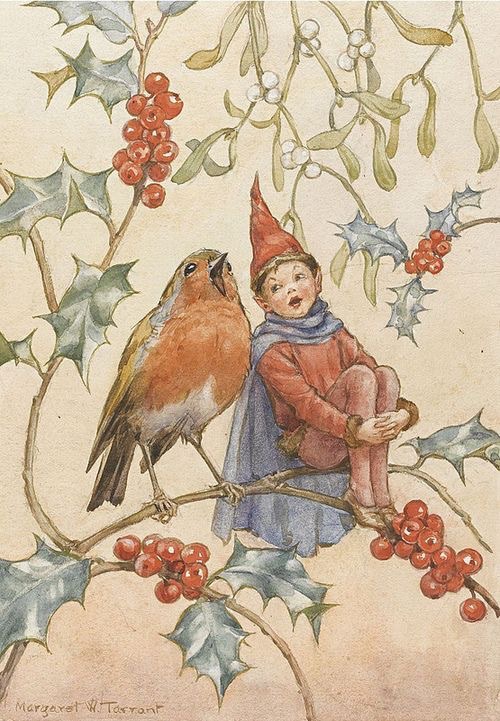 Da quel giorno, ogni inverno, quando il vento muove il vischio, si dice che sia l’uccellino che canta. E il folletto, invisibile, sorride tra i rami.