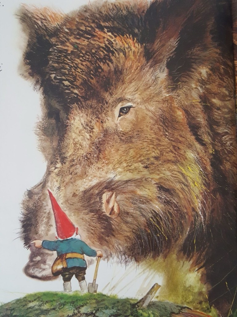 Così nel bosco, tra foglie e chiarore, nacque amicizia, risate e buonumore. Lo gnomo e il cinghiale, strani compagni, sognano insieme viaggi e castagni. Marius