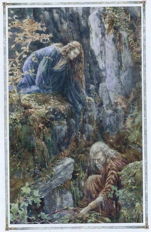C’era un tempo in cui Merlino e Morgana non erano avversari, ma custodi della stessa soglia. Lui, con i capelli d’argento e la veste consunta, piegato sul suolo a cercare nelle radici il respiro della terra. Lei, sospesa sulla roccia, col corpo avvolto in un manto blu notte, lo osservava dall’alto, con un misto di dolcezza e rimprovero.