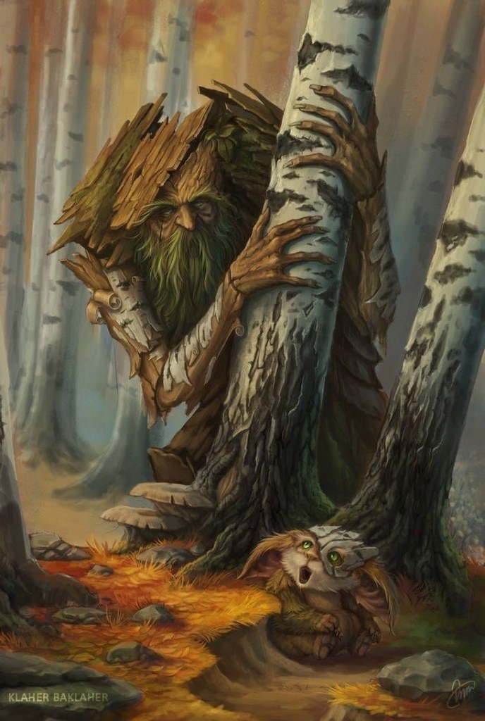 Tra i tronchi chiari, nel vento sottile, si muove il Guardiano, silenzio gentile. Barba di muschio, sguardo profondo, custode antico del verde del mondo.