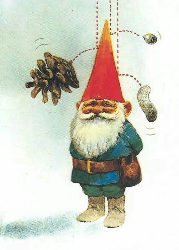 E mentre lo gnomo cammina tranquillo, con passo sognante e sguardo gentile, sul suo cappello la vita si posa: la punta è la chiave… della borsa nascosta! Marius